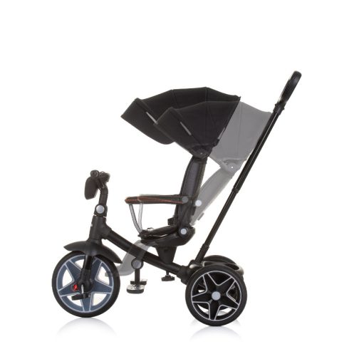 Ennek a háromkerekűnek a sokoldalúságát kiemeli a levehető kupola, a tolókar amely lehetővé teszi, hogy nagyobb gyerekeknek szánt triciklivé alakítsák.