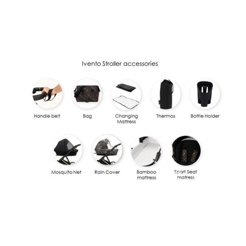 A képek között található eltérő színű termékek csupán a funkcionalitást bemutató illusztrációk. A babakocsi mintájával megegyező hordozót a gyártó nem készít, de a csomagban színben harmonizáló darabot biztosít. A babakocsi csak fekete vázzal rendelhető.
