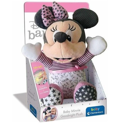 Nyugtasd meg és altasd el kisbabádat a Clementoni Baby Jó éjszakát Minnie plüss kellemes hangjával. A puha plüss játék olyan zenét játszik, mely elősegíti a nyugodt érzelmek kialakítását. Pocakját megnyova nem csak hangot, hanem kellemes éjszakai fényt is ad.