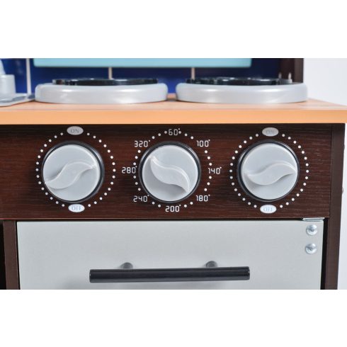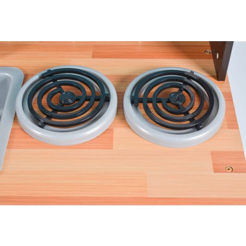 2. Részletgazdag Kivitelezés: Realisztikus dizájn, többek között forgó gombok, mosogató és sütő, amelyek hozzájárulnak a valódi konyhai élményhez.