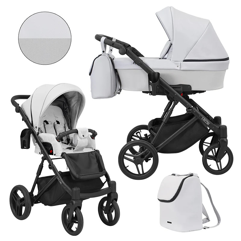 A képek között található eltérő színű termékek csupán a funkcionalitást bemutató illusztrációk. A babakocsi mintájával megegyező hordozót a gyártó nem készít, de a csomagban színben harmonizáló darabot biztosít. A babakocsi csak fekete vázzal rendelhető.