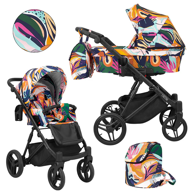 Kiemelkedően sokoldalú multi funkciós babakocsi, amely újszülött kortól használható, egészen a babakocsis időszak legvégéig. Különlegessége, hogy a vázra szükség szerint külön csatlakoztatható a mélykocsi, a hordozó (autósülés) vagy a sportrész. A mélykocsi kimerevíthető falú textil, mely összecsukását követően kis helyen is elfér. A fekvőfelület magasan helyezkedik el, és a kerekek kiváló rugózásából adódóan a rosszabb terepviszonyok esetén sem zökken ki a baba az alvásból. A sportrész használatát csak önállóan ülni tudó babák esetében ajánljuk, körülbelül 7-8 hónapos kortól. A többi babakocsival ellentétben a váz a sportrésszel együtt is összecsukható. A LAZZIO babakocsi tökéletes választás a kezdő anyukák számára, hogy a hétköznapok szerves részét képezve segítséget nyújtson a babák mozgatásában.
