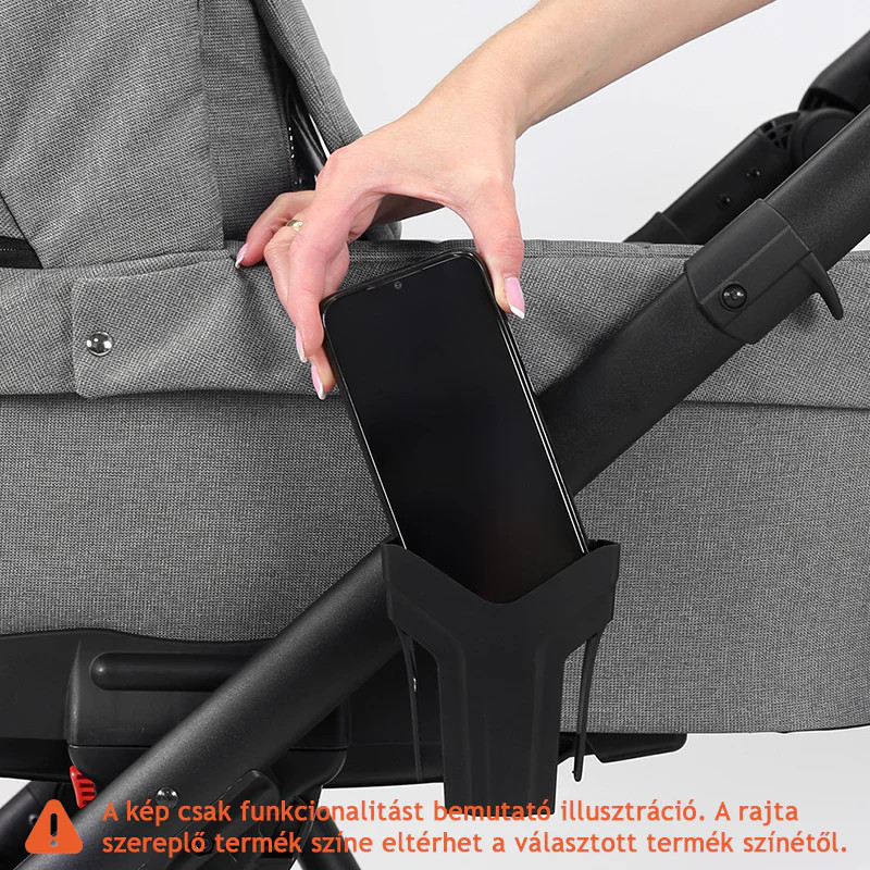 A képek között található eltérő színű termékek csupán a funkcionalitást bemutató illusztrációk. A babakocsi mintájával megegyező hordozót a gyártó nem készít, de a csomagban színben harmonizáló darabot biztosít. A babakocsi csak fekete vázzal rendelhető.