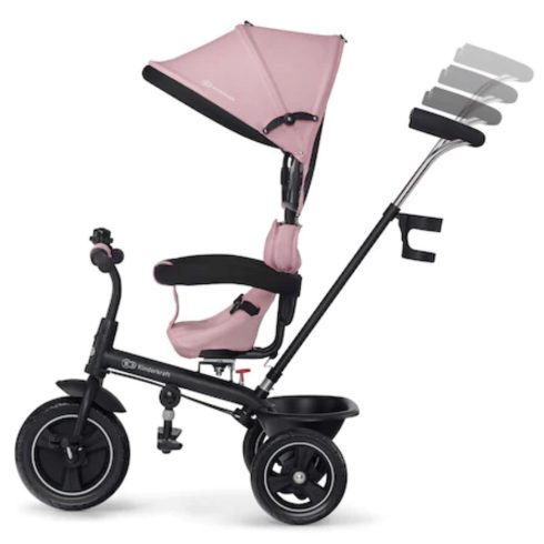 Levehető szülő-tolókaros tricikli, amit a kicsi hosszú ideig tud használni. Nagy EVA gumiabroncsai vannak, az első 10'', hátsó 8'' méretű. Stabil és ellenálló acél vázzal rendelkezik. Az ülése elforgatható és megfelelő magasságra beállítható. Az üléshuzata levehető. Az ülésen biztonsági övek is vannak, amelyek megakadályozzák a gyermek véletlen leesését. A pedálok tartós, kemény műanyagból készültek és csúszásgátló kezeléssel vannak ellátva. Levehető háttámla, magas, széles, légáteresztő anyagból készült. Összecsukható lábtartó, megfelelő választás a gyerek számára, ha nem éri el a pedált.Három módon használható: Tricikli szülő-tolókarral, Tricikli, KerékpárNagy hátsó kosár különféle dolgokra, amelyeket magával vinne a kerékpározásra.