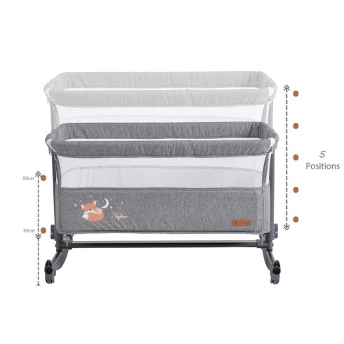 Az ágy magassága 5 különböző pozícióba állítható, alkalmazkodva így a szülők ágyának magasságához.
