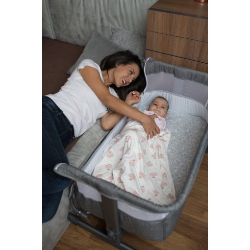 Egyszerűen odailleszthető a szülői ágy mellé, így a baba közvetlenül a szülők mellett alszik