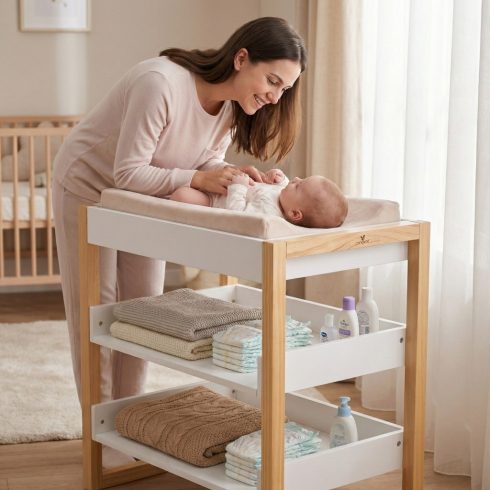 A Timber pelenkázóasztal kényelmet és rendszerezést biztosít, így minden szükséges dolog mindig kéznél van, amikor a babájáról gondoskodik.