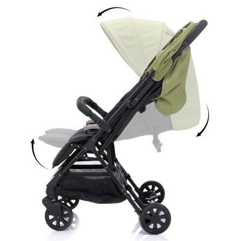 - Levehető karfa- Állítható lábtartó- Párnázott 5 pontos biztonsági övek