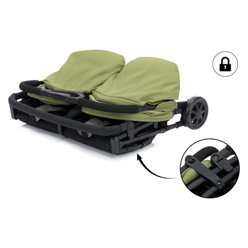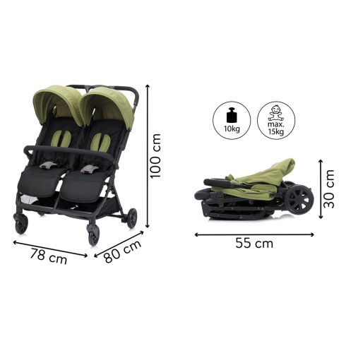 Kompakt összecsukható méretével a testvér babakocsi minden csomagtartóban elfér. A háttámla és lábtartó egymástól függetlenül állítható, és nyugodt alvási helyzetet kínál a gyermekeinek. A párnázott 5 pontos biztonsági övekkel gyermekei mindig biztonságban vannak útközben.A két napfénytetőn ablak található, amely biztosítja, hogy szemmel tartsa gyermekét. A bolygósítható és rögzíthető első kerekeknek köszönhetően a testvérbabakocsi különösen mozgékony és könnyen manőverezhető bármilyen terepen, két gyermekkel is.