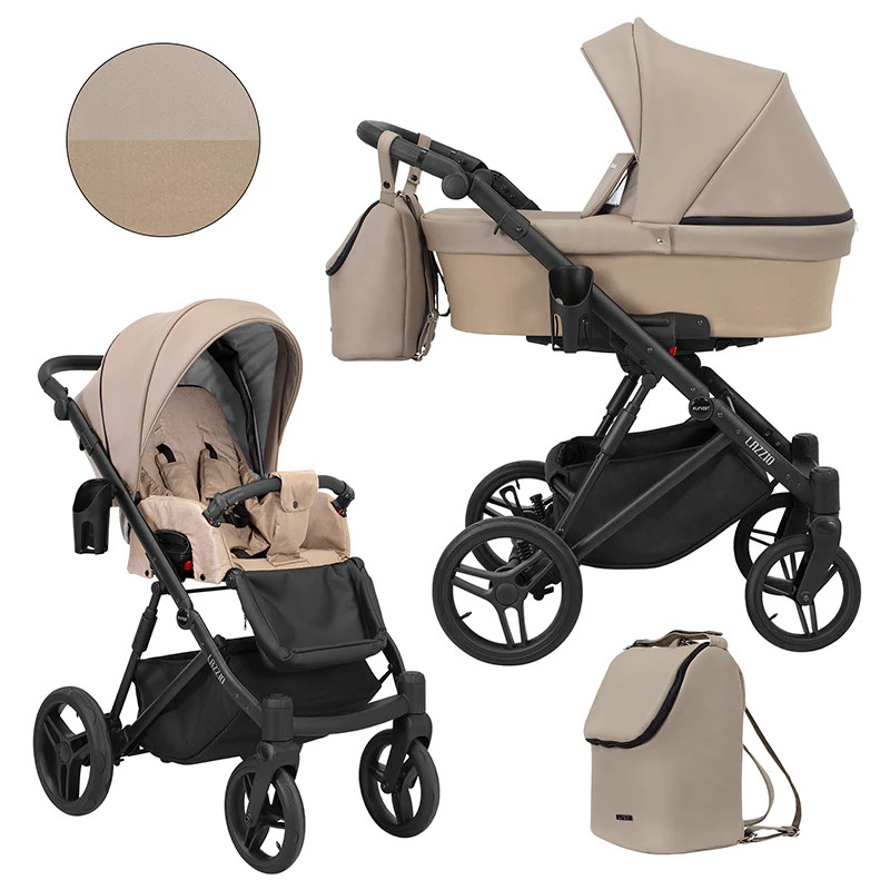Kiemelkedően sokoldalú multi funkciós babakocsi, amely újszülött kortól használható, egészen a babakocsis időszak legvégéig. Különlegessége, hogy a vázra szükség szerint külön csatlakoztatható a mélykocsi, a hordozó (autósülés) vagy a sportrész. A mélykocsi kimerevíthető falú textil, mely összecsukását követően kis helyen is elfér. A fekvőfelület magasan helyezkedik el, és a kerekek kiváló rugózásából adódóan a rosszabb terepviszonyok esetén sem zökken ki a baba az alvásból. A sportrész használatát csak önállóan ülni tudó babák esetében ajánljuk, körülbelül 7-8 hónapos kortól. A többi babakocsival ellentétben a váz a sportrésszel együtt is összecsukható. A LAZZIO babakocsi tökéletes választás a kezdő anyukák számára, hogy a hétköznapok szerves részét képezve segítséget nyújtson a babák mozgatásában.