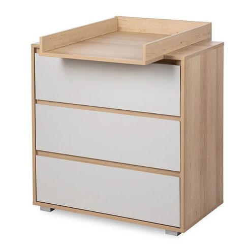 Kiváló minőségű három fiókos komód, színes berakással, jól pakolható fiókokkal. Praktikus pelenkázó feltéttel is választható, amelybe a webáruházunkban kapható puha pelenkázó lapok pontosan illeszkednek. Nem csak a kisgyermekek, hanem akár tinédzser szobáknak is hasznos bútora lehet a pelenkázó feltét leszerelését követően.
