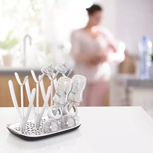 A Philips Avent szárítóállványt arra tervezték, hogy kisgyermeke cumisüvegeit és annak tartozékait a legtisztább és legrendezettebb módon szárítsa meg. Rugalmas kialakításával, levehető cseppfelfogó tálcájával és bármekkora méretű üveget elbíró nagyságával ez az eszköz megoldást nyújt az Ön mindennapi szárítási igényeire.