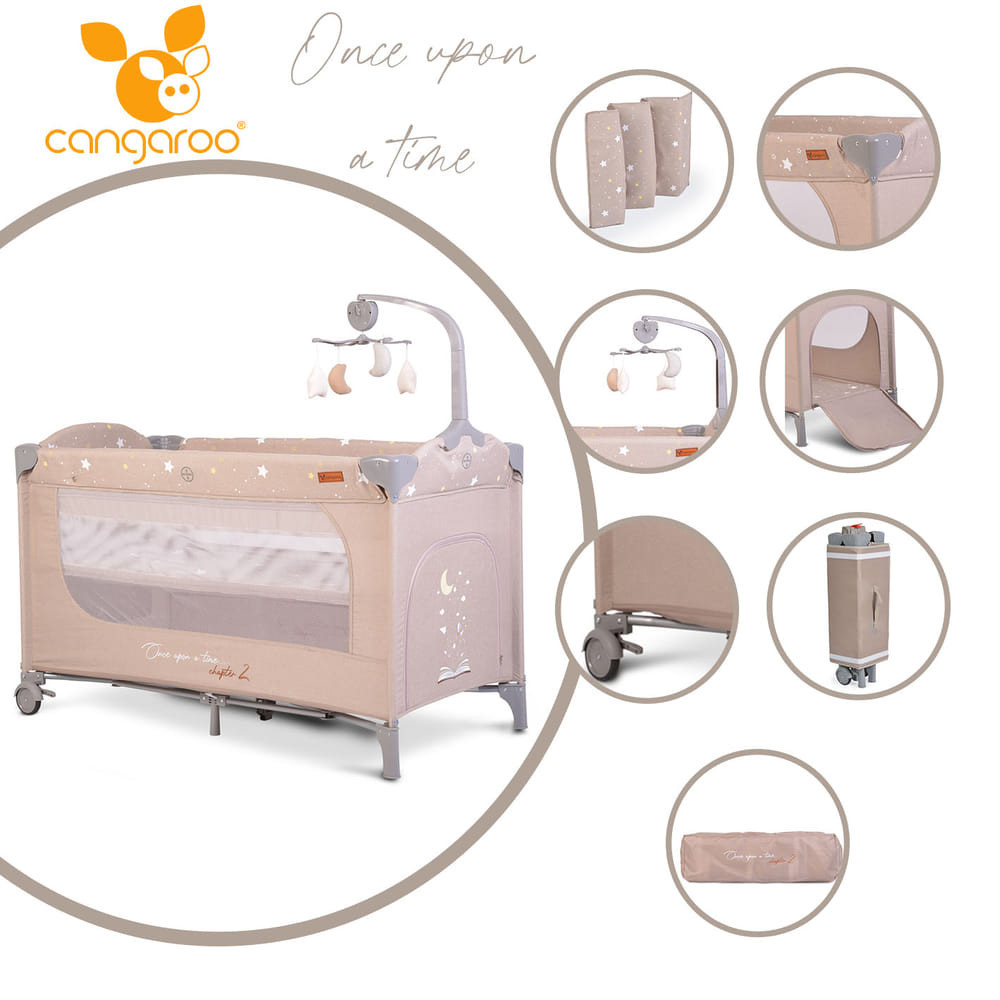Az ONCE UPON2 bézs színű utazóágy a Cangaroo márkától, nem csak funkcionális, de esztétikailag is kellemes látványt nyújt.
