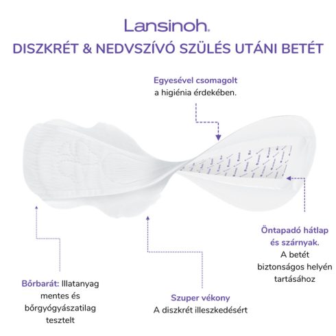 Lansinoh egészségügyi betét szülés utáni diszkrét és nedvszívó 2.héttől egyesével csomagolt 12db