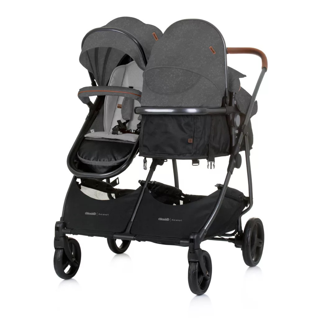 A Duo Smart a Chipolino iker- és testvér babakocsija két egymás mellett elhelyezkedő üléssel, amelynek legnagyobb praktikuma, hogy két különálló, mózesség alakítható részből áll, így tökéletes választás a gyerekek újszülött korától egészen 3 éves koráig!