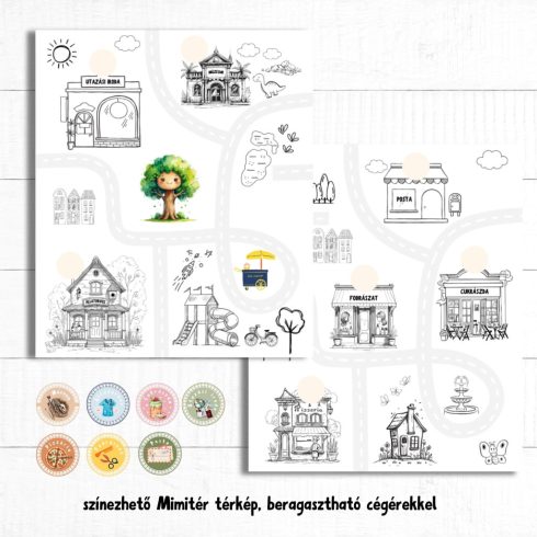 Egy varázslatos városnak térkép is kell, így a könyvben is találnak egyet. Ráadásul színezhető, a kis kivágható cégérekkel díszíthető. Így biztosan minden gyerkőcnek egyedi lesz a saját kis városkája.