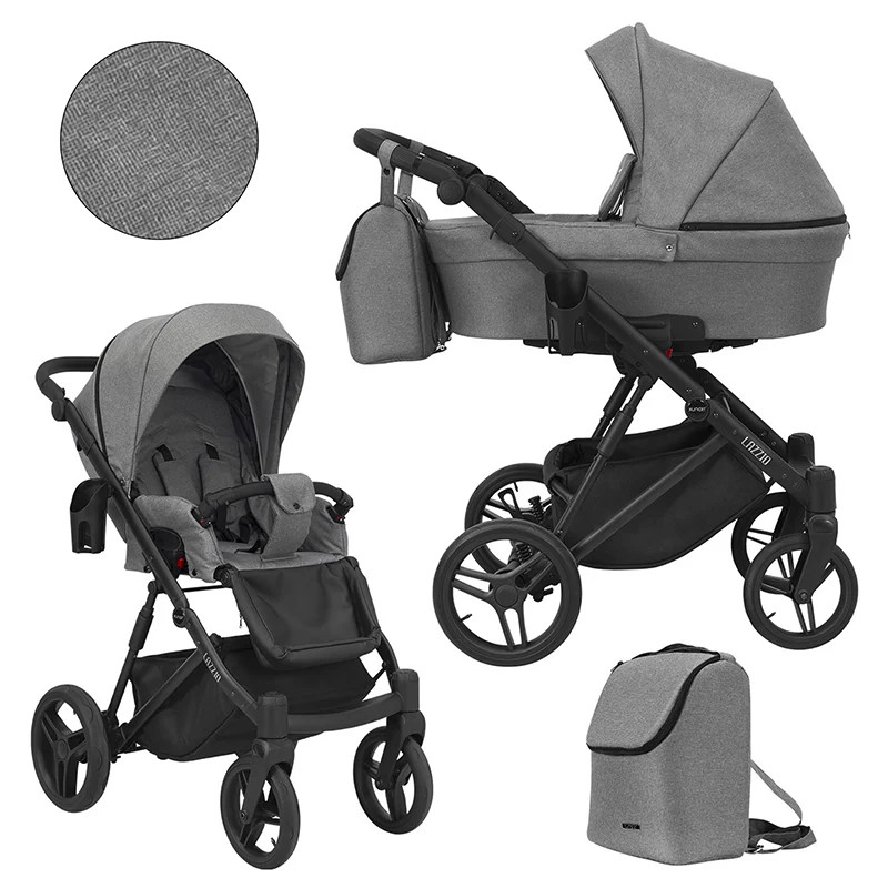 Kiemelkedően sokoldalú multi funkciós babakocsi, amely újszülött kortól használható, egészen a babakocsis időszak legvégéig. Különlegessége, hogy a vázra szükség szerint külön csatlakoztatható a mélykocsi, a hordozó (autósülés) vagy a sportrész. A mélykocsi kimerevíthető falú textil, mely összecsukását követően kis helyen is elfér. A fekvőfelület magasan helyezkedik el, és a kerekek kiváló rugózásából adódóan a rosszabb terepviszonyok esetén sem zökken ki a baba az alvásból. A sportrész használatát csak önállóan ülni tudó babák esetében ajánljuk, körülbelül 7-8 hónapos kortól. A többi babakocsival ellentétben a váz a sportrésszel együtt is összecsukható. A LAZZIO babakocsi tökéletes választás a kezdő anyukák számára, hogy a hétköznapok szerves részét képezve segítséget nyújtson a babák mozgatásában.