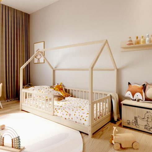 Íme, miért tartják sokan jobb választásnak a Montessori ágyat a hagyományos ágyaknál:1. Önállóságra nevel. A Montessori ágyak általában alacsonyan helyezkednek el, így a gyermekek könnyedén be- és ki tudnak mászni az ágyból, anélkül, hogy segítségre lenne szükségük. Ez elősegíti az önállóságot, és arra ösztönzi a gyerekeket, hogy felelősséget vállaljanak a saját alvási rutinjukért.2. Támogatja a mozgás szabadságátAz alacsony fekvési magasság miatt a gyermekek szabadon mozoghatnak, felkelhetnek, és visszafekhetnek anélkül, hogy aggódniuk kellene a sérülések miatt. Ez segít az önszabályozásban és az autonómiában.3. Segít a gyermekek önállóságának erősítésébenA Montessori ágyak részei egy olyan környezetnek, amelyben a gyermekek maguk választhatják meg, hogyan rendezzék el a saját terüket. Például könnyen hozzáférhetnek a játékaikhoz, könyveikhez vagy más személyes tárgyaikhoz. Ez az önállóság segíti a gyermekek magabiztosságának és önértékelésüknek a fejlődését.4. Felelősségtudatra tanítMivel a gyermekek könnyen elérhetik és elhagyhatják az ágyukat, nagyobb valószínűséggel vesznek részt az ágyazásban vagy a szoba rendben tartásában. Ez segít abban, hogy a gyermekek korán megtanulják a felelősséget.5. Illeszkedik a Montessori filozófiájáhozA Montessori pedagógia célja, hogy olyan környezetet teremtsen, amely támogatja a gyermekek fejlődését, ahol minden a gyermekek szintjén van, és könnyen használható. A Montessori ágy lehetővé teszi, hogy a gyermekek saját alvóhelyüket kezeljék, ami természetes kiterjesztése annak, hogy a gyermekek saját maguk választhatják meg, mit csinálnak, melyik eszközt használják, vagy milyen területen játszanak.6. Csökkenti a szorongást és az éjszakai stressztNéhány gyermek úgy érezheti, hogy a hagyományos, magas peremű ágyak vagy a kiságyak korlátozóak és ijesztőek. A Montessori ágy nyitott kialakítása nyugodtabb, kevésbé megszorító környezetet biztosít, amely segíthet enyhíteni az elalvási stresszt, és javíthatja az alvás minőségét.7. Szép, egyszerű alvóhelyet biztosítA Montessori ágyakat gyakran minimalista formában tervezik, ami egy nyugodt, rendes környezetet teremt, amely segíti a gyermekek pihenését és alvást. Ezen kívül könnyen személyre szabható puha takarókkal, párnákkal vagy kedvenc plüssfigurákkal, így az ágy olyan hely lehet, amely a gyermeknek a kényelmet és biztonságot jelenti.Összességében a Montessori ágyak nemcsak az alvást szolgálják, hanem segítenek a gyermekek fejlődésében, miközben egy játékos bútordarabbal teszik még szebbé a gyerekszobát. Reméljük, ez segít a Montessori ágyak előnyeinek megértésében!Anyaga: Tömör- gőzölt bükkfa.Felülete: Bükkfa elemink felülete kizárólag vizes bázisú természetbarát anyagokkal kezelt. Felületeit először egy szállekötő és alapozó anyaggal, ezt követően egy fedő, majd egy speciális vizes bázisú lakk réteggel kezeljük. Ezen többrétegű behatás által az átlagosnál egy jóval magasabb védelmet, tartósságot valamint élettartamot tudunk elérni a kezelt fa felületén. Tisztításuk ennek köszönhetően gyors, egyszerű és biztonságos.A DIN 53160 szabvány szerinti vizsgálat, a festék száradás utáni oldhatósága szempontjából, nyál- és izzadságálló felületet biztosít. Stabil, biztonságos oldalrácsai, belülről nem látható csavarkötéssel szereltek. Oldalrácsaik könnyű kapaszkodást, szabad kilátást, és a szülőnek is jó rálátást biztosítanak az ágyban játszó gyermekre. Az ágy teljes körűen megfelel az Európai Unió és a Magyar Szabványügyi Testület által előírt szigorú szabványoknak.Méretek:Az ágy külső méretei: 166 cm x 86 cm Az ágy teljes magassága:130 cmAz ajánlott matrac mérete: 160 cm x 80 cm Az ajánlott matrac vastagság: 10-20 cmAz ágy teherbírása: 110 kgA termék teljes súlya: 27,00 kgDobozszám: 2 doboz*A képek csupán illusztrációk. A képen látható matrac illusztráció, nem a termék része!