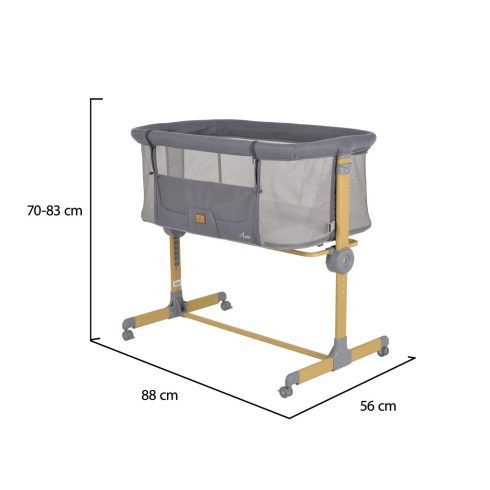 A jó szellőzés és a szülők általi láthatóság érdekében pedig a kiságy négy oldala nagyméretű hálós ablakokkal készült.
