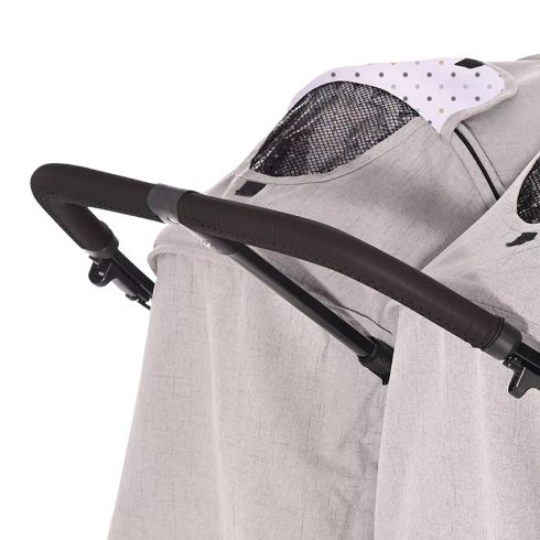 A Lorelli Duo ikerbabakocsi két egymás mellett elhelyezkedő üléssel rendelkezik, kényelmes használatot biztosít az ikerbabáknak.
