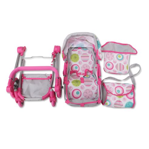 Moni Toys Pink rose játék mózes kosaras babakocsi