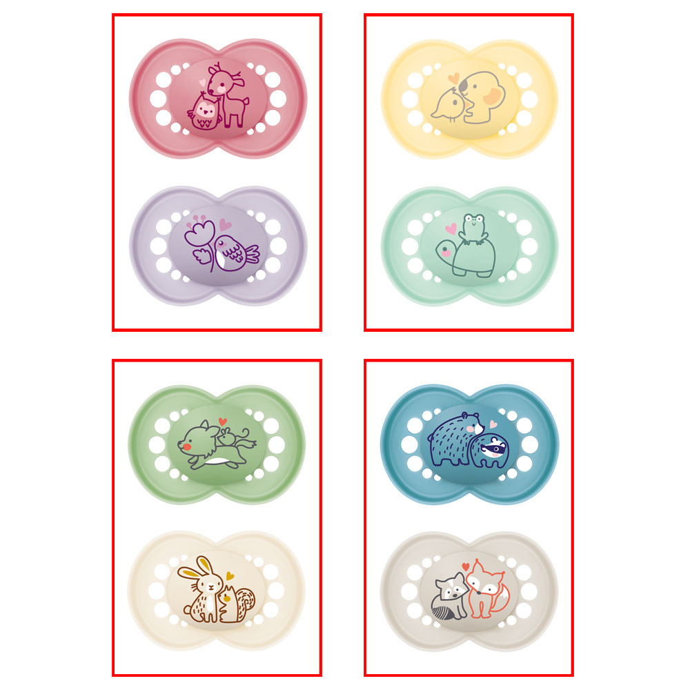 Matt felület, természetes színek. Új figyelemfelkeltő csomagolás. Szimmetrikus formájú szívóka, amely mindig tökéletesen illik a baba szájába. Bőrbarát a nagy szellőzőlyukaknak és az egyedülálló dudoros MAM belső oldalnak köszönhetően.